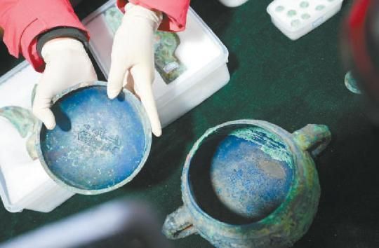 在发掘中,考古工作者还发现了一件趣事。M1901号墓葬新出土的铜簋与40多年前出土的圉簋纹饰相同,器盖内铭文为“白(伯)鱼作宝尊彝”,器内底铭文则有“王赐圉贝,用作宝尊彝”字样。“据铭文推断,这两件簋的盖、身在下葬时应是混淆了,一错3000年。”王晶说,时隔40余年,两器重聚首,也证明了(伯)鱼和圉实为同一人,对于西周的名、字制度研究,增加了确凿的证据。同时,该墓葬新出土的青铜面具、兽面形铜饰、成组的铜车马器、镂空有銎铜戈,纹饰精美、细节丰富,均为首次发现。M1903号墓葬出土了多件漆器,包括三角纹簋、豆等,“漆器的发现,弥补了上世纪现场文物保护技术有限的遗憾,对于墓葬随葬器用制度的研究具有重要意义。”