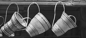 土家人的背篓各式各样,有编织考究、图案新颖的,有表面粗糙、实则坚牢的;有茶背篓、板背篓、粗背篓、扁背篓、脚背篓、大斗背、三斗背……我曾想,土家人用别的运输工具行不?如果说开汽车条件不具备,那么骡马牛车、板车和鸡公车行不?有的地方行,有的地方则不行。总之,什么地方也不如背背篓灵活便当!这实在是土家人在劳动实践中的创造发明啊!