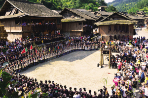 2014年7月18日,贵州省黎平县双江镇黄岗侗寨侗族同胞举行了一年一度的“喊天节”。“喊天节”又称“祭天节”或“求雨节”,每年农历六月十五日举行。当天,侗族同胞开展了祭萨、 祭天、捕鱼比赛、鼓楼对歌等活动。     王炳真摄影报道