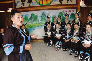 特别值得一提的是,2005年吴品仙还与3名歌师收留了一位来自澳大利亚名叫英倩蕾的女洋博士做学生,教她说侗话、唱侗歌。在三龙侗寨生活不到一年,英倩蕾不仅学会了一口流利的侗话,还学会唱30多首侗歌。通过田野调查,英倩蕾博士完成了10万余字的三龙侗族民歌的博士论文著作,有力地将侗族大歌推向了海外。