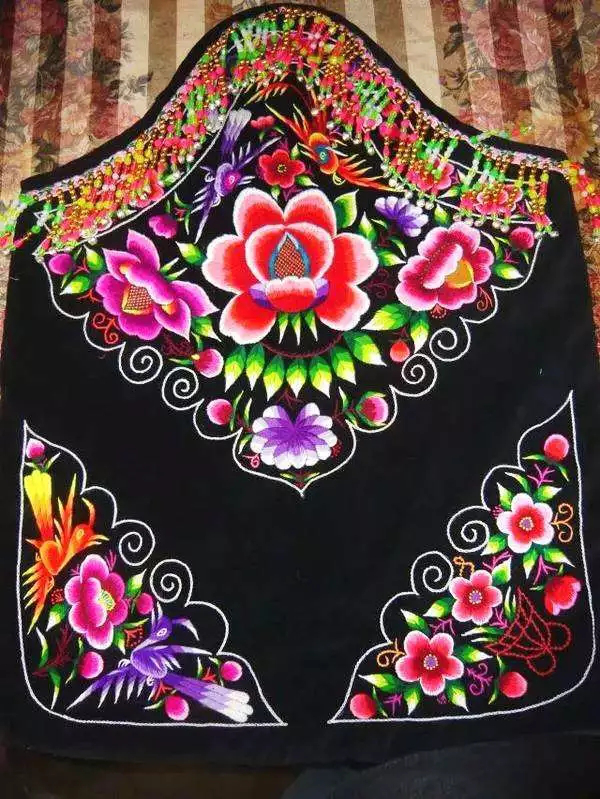彝族妇女围腰,是女性审美的结晶,实用美观。围腰是最能集中体现彝族女性心灵手巧的女红作品,因此成为青年男子传统择偶的重要标准之一。每条彝族围腰,须经过剪纸、裁剪、刺绣、挑花、配饰等环节,每一个细微的过程都倾注了彝女的聪明与才智。事实上,彝族妇女围腰,还蕴含着重要的彝族社会历史、文化信息。