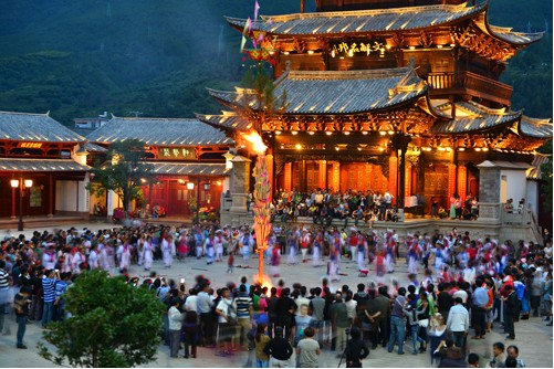剑川的火把节,还是增进亲友情谊的一个红火节日。到燃烧着的火把树下玩,烤着火把节的火,在火光中欢乐谈笑,平时见面只打招呼的人喝酒碰杯,说句贴心的话,情谊一下子就升华了。