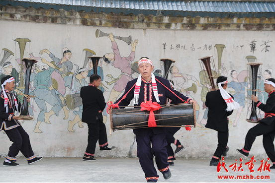 罗运村村民跳《黄泥鼓舞》。