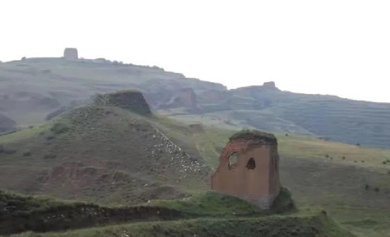 小元岇长城比北堡川高200∽300米,山川之间是为宽缓慢坡,今可驱车直达长城顶上。这对于当年善于驰骋野战的胡骑形不成特别的阻碍,因此这里的长城防御布置的相当密集。站在海拔1650米高的马头山墩台远眺,长城墙体纵横交错曲折环互,蜿蜒于山脊,迷离若龙蛇横卧。烽堠墩台林立,密密如点棋局,洒铺于群山之间。马头山墩台坐落于最高峰,脚下群山连绵,长城墩台尽收眼底。长城内侧有一民堡,因靠近小元峁村称小元岇堡,此堡应为文献所载好汉山堡,由兵使卢友竹筑于崇祯五年,是为加强视远隘口而筑的防御军堡。