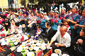 “中国红河·元阳2009年哈尼梯田文化旅游节”上,哈尼族群众摆下360桌、近0.5公里长的哈尼族长街宴,用最隆重的礼仪和风味美食,迎接来自海内外的宾客。