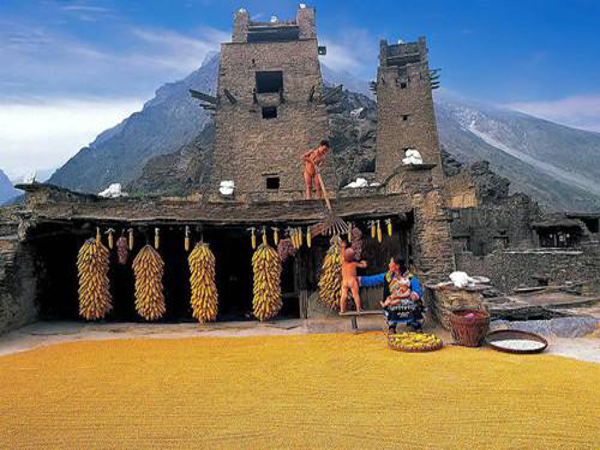 羌族的建筑很有特色。因为羌族聚居区位于青藏高原的东部边缘的岷江上游地区,这里山脉重重,地势陡峭。羌寨一般建在高半山,因而羌族被称为“云朵中的民族”。