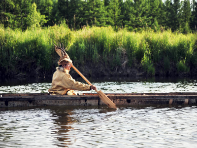 在鄂伦春族中间,还有另一种桦皮船赛的形式,即少年坐在桦皮船上,于静静的小河上拿棹板打水中游鱼,以打中鱼的多少定名次,这类比赛也是饶有趣味性的。