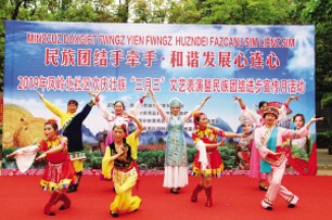 南宁市以社区为平台,营造各民族共居、共学、共事、共乐的社会条件。从居住生活、工作学习、文化娱乐等日常环节入手,以“壮族三月三”等节庆活动为契机,坚持每年开展为期一个月的民族团结进步宣传月活动,组织民族歌舞表演、民族传统体育竞技、民族团结知识竞赛等一系列主题活动。借助新媒介传播优势,开展了一系列民族团结主题网络宣传活动,积极推进“互联网+民族团结”行动,促进民族团结宣传向人文化、大众化、实体化发展。