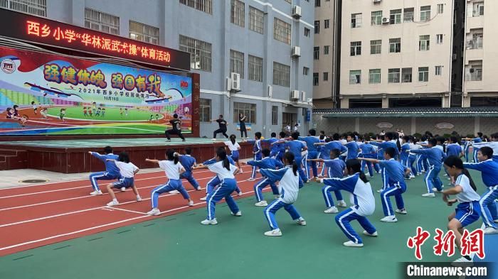 深圳市宝安区西乡小学的学生们在练习华林派武术操 西乡小学 供图