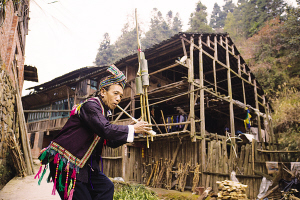 在侗族人口占78%的湖南省通道县的牙屯堡镇,我们原本准备寻找会织侗锦的姑娘,却在风雨桥上被一阵声响吸引住了,便问当地人:“这是何声?制乐者何人?”原来,此声为芦笙所发,制芦笙者为杨枝光。他制作的侗族芦笙,因手艺出众,在湘黔桂的侗族村寨颇有名气。2008年6月,侗族芦笙被列入国家级非物质文化遗产名录,杨枝光荣幸地成为侗族芦笙制作唯一的国家级“非遗”传承人。
