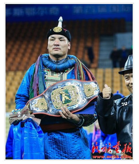 “鄂尔多斯鄂尔奇”第四届国际蒙古搏克金腰带争霸赛冠军得主查干扎那
