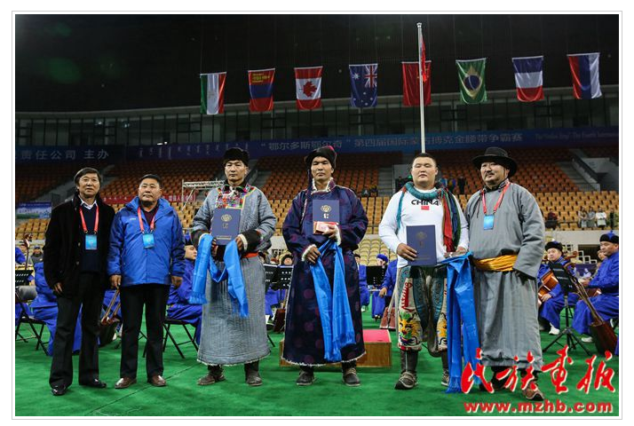 亚军格格日呼(右二),季军斯琴毕力格(右三),殿军乌力吉巴特尔(左三)