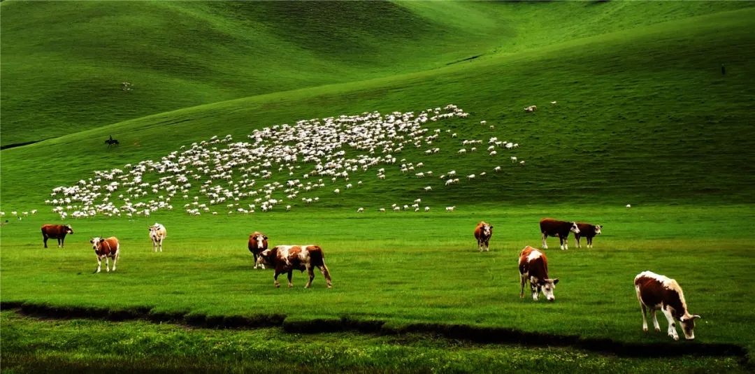 雄鹰展翅上苍穹,遍地牛羊接远峰。