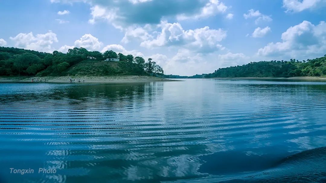 沙海现芳洲,草茂花稠。参天古木鸟啁啾。溪水涓涓吟四季,海内独幽。不再走石头,难见沙流。风清水碧韵悠悠。神女降妖佳话在,景壮千秋。