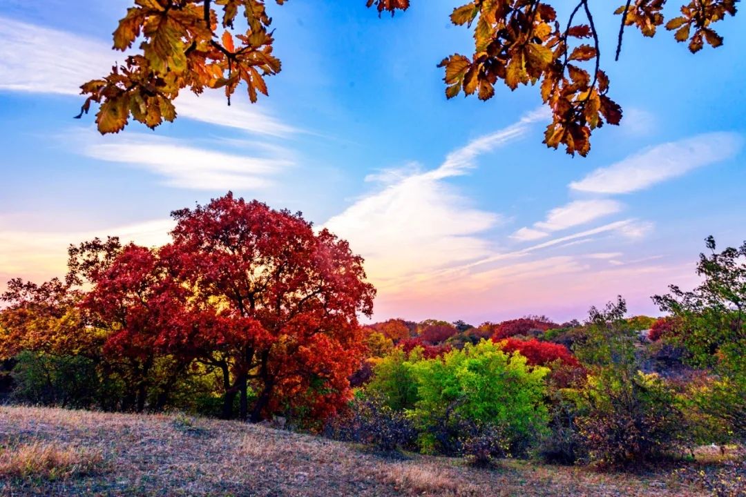 枫林霜叶彩蝶翩,秋韵天成红满山。