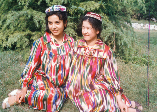 乌孜别克族女性喜爱穿连衣花裙,开领,宽大多褶,不束腰带。上衣比较短,只及大腿部,无领、无袖、对襟,下摆的正中和正面两边都开衩,形成两片宽带。襟和宽带的边都绣花。出门时还要穿斗篷、蒙面纱,从头到脚都不能外露。