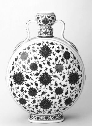青花缠枝莲纹如意耳扁壶,清乾隆。 故宫博物院藏