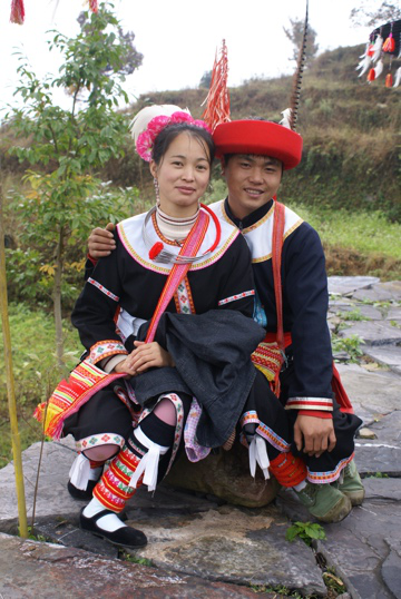 身穿瑶族传统服饰的恩爱夫妻(刘军摄)