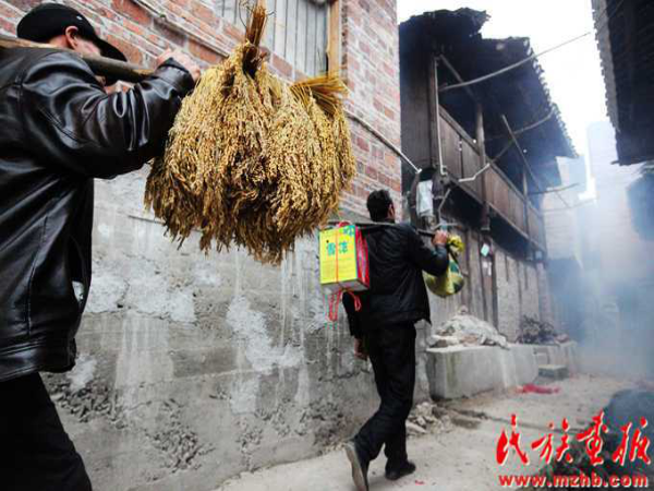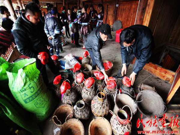 这次结婚的共有15对新人(多时有二三十对),均来自本寨的青年男女。婚礼从大年二十六开始,共进行三天,在三天的婚礼中新郎新娘家均有婚宴,尤以第一天中午的规模最大也最为隆重。