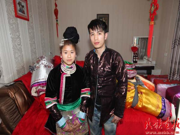 新郎潘好生和新娘陈腾慧在洞房合影