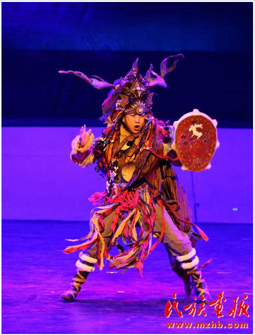 大型原创民族歌舞诗剧《山岭上的人——鄂伦春》在国家大剧院上演,图为歌舞诗剧第一幕《山语》之情景表演《图腾印象》