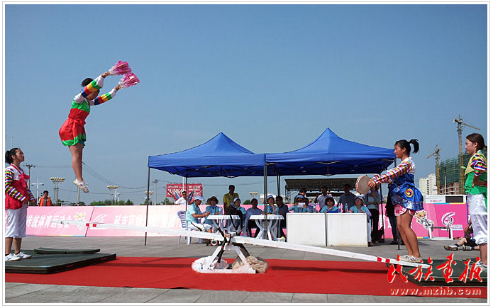 跳板是吉林省延吉市朝阳川镇朝阳川小学的特色体育项目(民族画报实习记者 董梅 摄影)