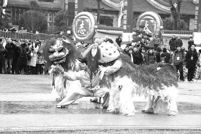 在湖南衡阳举办的南岳龙狮争霸赛现场的舞狮表演。贾 艳 摄