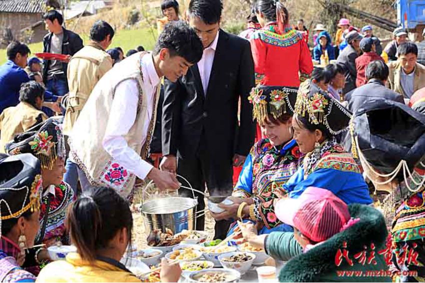 新郎为参加婚礼的亲友添汤加菜