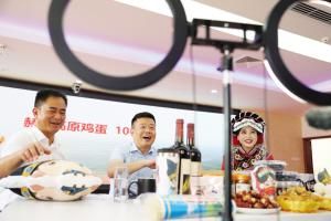 接下来出场的是葡萄酒,这是新推出的产品。天葡庄园田园综合体项目的产业园区项目招商和落地工作,我是从头到尾都参与的。作为中央统战部引进的帮扶项目,这个坐落在六曲河镇的葡萄园区,占地面积近200亩,如今种有夏黑、旭旺、阳光玫瑰等葡萄品种。