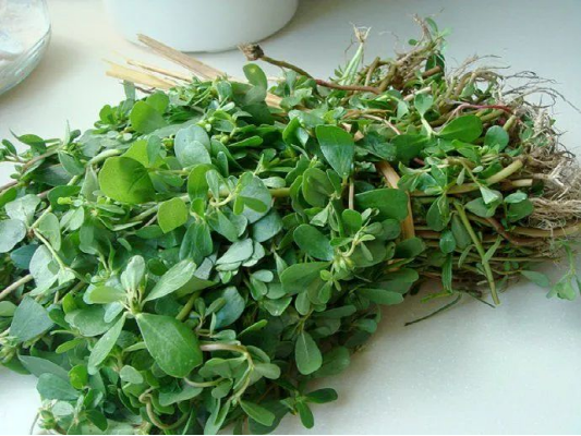 马齿苋吸纳了肉的油脂