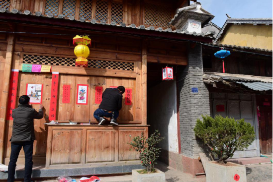写春联绘年画的传统在剑川县金华镇由来已久,明朝洪武年间改土归流和移民屯边制度的推行,使儒家文化、理学思想逐渐融入边疆人民的生活。金华古镇居民受此影响,走上追求仕途功名的道路,文人乡绅都以显示儒学身份为荣。每逢春节,人们会邀请有功名的仕子或传学明经的文人来到家中,撰写对联,同时根据时令画上一两幅门神画,希望通过此举祈愿自家后生求得功名。如今走在金华古镇西门街上,仍能看到家家种花养草,户户楹联盈门,一派文风蔚然的生机。