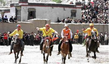 藏历4月10日到28日,是江孜传统的节日—达玛节,藏语意为跑马射箭。据传说江孜法王绕丹贡桑帕巴桑布,是萨迦王朝的内务大臣,又是江孜法王,在群众中颇有威望。帕巴白去世后,他的弟子每年做祭祀,以示纪念。后因战乱,祭祀中断。至藏历火鼠年(公元1408年)绕丹贡桑帕任江孜法王,遵其父贡桑帕的遗嘱,恢复祭祀。这一年藏历4月10日至4月27日,绕丹贡桑帕为其祖父念经祭祀,直到28日,开始进行娱乐活动。内容主要是晒唐卡画、宗教文艺活动等。除此之外,还有角力、跑马、抛石头等娱乐活动。这些活动,全由法王的部下、兵丁、佣人承办。从这年开始,固定这段时间为每年一度的祭祀盛典节日。到了扎西绕丹帕(公元1447年)统辖江孜的时候,娱乐活动更为丰富,除上述内容外,还增加了跑马射箭。于是流行为盛大的江孜达玛节。
