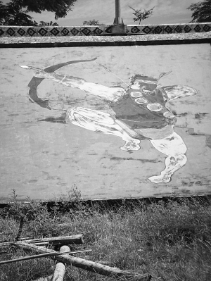 台东县卑南乡东兴村部落会所外墙上的射日图。