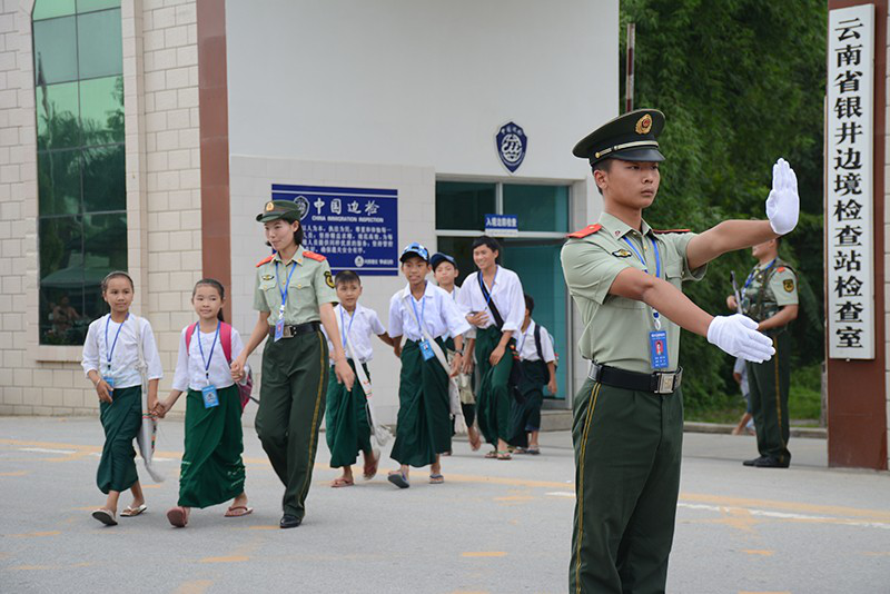 银井边境检查站官兵为缅籍学生当安全员 李富贵/摄