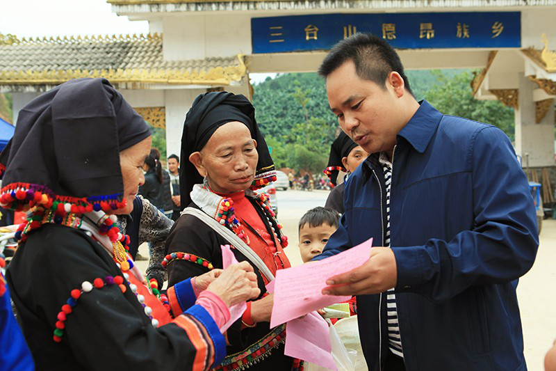 三台山徳昂族乡乡长杨爱明和德昂族群众参加农业科技推广活动