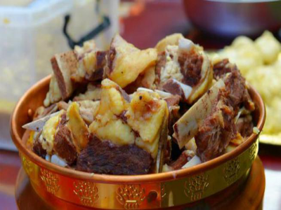 土族的饮食种类可大致分为三类,即面食类、肉食类和饮料类。面食类又可大致分为油炸食品,如“包适左”、盘馓、馓子、“乾过日”“美散尔”、油饼等;烙烤食品,如“沓日乎”“哈力海”“哈流”“得日麻”、韭合儿、烙饼、“空食”、芽面饼、锅馍等;煮熬食品,如长面条、面其、雀舌头、疙瘩、圆砣、扁食、“卜达”、拌汤、凉面、凉粉、熬饭等;蒸制食品,如馒头、月饼、花卷、烧麦等;油拌食品,如清油炒面、酥油炒面;搓制食品,如“麦索尔”“丁丁麻勺”“面丁丁”等。肉食类也是土族的主要食品,原先以煮食为主,后来发展为炒、煎、焖、炸、烤等做法。主要有手抓羊肉、手抓猪肉、羊头肉、“麻哈方子”(大肉块)、“希吉专”(压台块肉)、“格热专”(肉块份子)等。此外,土族还用豆面、青稞面及各种配料,将肠子制成血肠、面肠、油肠来食用。土族的饮料主要有熬茶、麦茶、奶茶、面茶、萝卜汤、酩馏酒、酸奶、酸浆水等。熬茶是每日离不开的饮料,也是平时招待来宾的必备饮品。有时再调上牛奶、酥油与奶皮,味道上乘。土族人也喝麦茶,这种茶性热,适合冷天饮用,且营养丰富,有滋补身体、提神调养的功效。酩馏酒主要原料是青稞,在过去几乎家家都会酿造。此酒度数较低,口味偏甜,在酿制时往往还会加入一种名为羌活的中药,可散表寒、祛风湿。