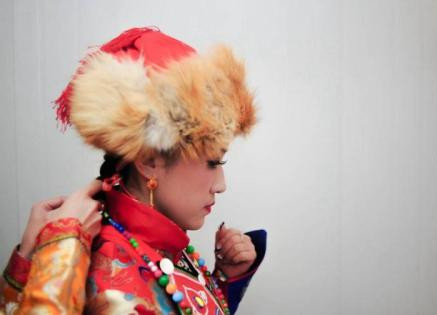 裕固族妇女的狐皮帽子