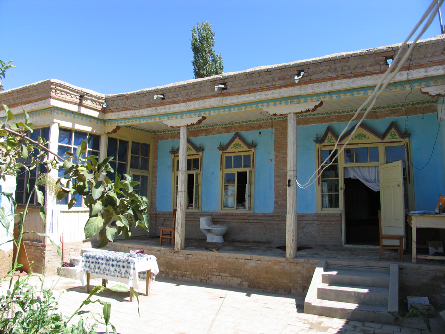 土房的墙一般都很厚,里面粉刷石灰,有的还挂壁毯。墙壁多用石灰刷成淡蓝色,安双层玻璃窗,内层为活动式,夏天可以取下,窗外有木屉子,起保护作用。窗户上还开有小孔,以便通风。房内的地面为水泥或砖面。室内除有的搭火炕外,其它的装饰和木房的一样。不论哪个房间,都可作为卧室,也用于待客,厨房和储藏室单建,有的还单建馕坑。