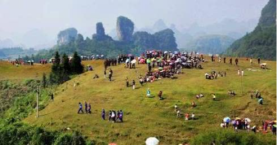 走坡节是罗城仫佬族人民的传统节日,早在清代,人们便在每年的农历正月和八月举行,节期三五天不等。每当节日到来之时,仫佬族人便结伴而行,聚集在山清水秀的山坡上唱起山歌,以歌会友,以歌传情,以歌为媒,谈情说爱,少则几十人,多的几百人,上千人不等。山脚、坡上、水边、路旁,一群群男男女女相互对唱山歌,男女间一唱一答,热闹非凡,其乐无穷。