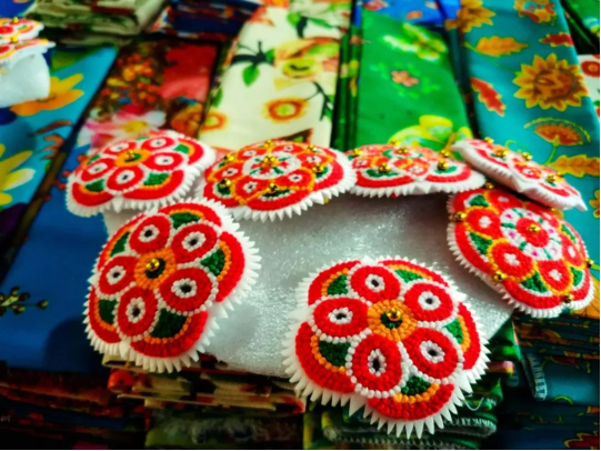 刺绣在惠安女服饰上广泛存在,与国内出名的刺绣不同,它们只是惠安女服饰的附属品,质朴甚至经常被人忽视,它们跟随惠安女出入于渔港与山野,在阳光中耀眼,在海风中飘扬,堪称“行走的刺绣”。