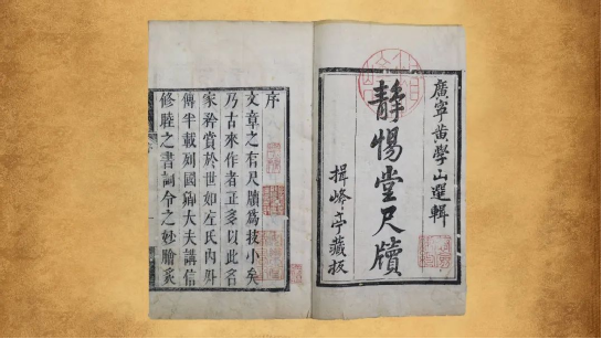 呼和浩特市图书馆藏《静惕堂尺牍》八卷,清曹溶撰 ,清黄汝铨选,清康熙三十九年(1700)黄汝铨揖峰亭刻本。四册一函。版框高十七点八厘米,宽十二点三厘米。半叶九行行十九字,左右双边,粗黑口,单黑鱼尾,鱼尾下镌卷数、页码。牌记镌“广宁黄学山选辑/静惕堂尺牍/揖峰亭藏版”。卷前首列清康熙三十九年(1700)黄汝铨序,次列陈箴序、目录。内封、序前、目录前、卷端皆有钤印,有“揖峰亭”“恭俭谦约”“安乐堂藏书记”“明善堂览书画印记”“居易堂”“深根宁极”“子重”“颂臣”等。