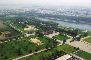 殷墟腹地的主要路网呈“两纵三横”分布,干道路宽约30米,其中两条南北向干道平行通向宫殿宗庙区;三条横向干道由西北向东南展开,在宫殿宗庙区南部与南北向干道相交。水渠也有干渠、支渠之分,干渠从洹河上游分水后沿地势从西北向东南流淌,在“大邑商”腹地向东南方向分出多条支流。