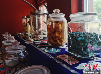 图为唐卡绘画矿物颜料展示。 张添福 摄