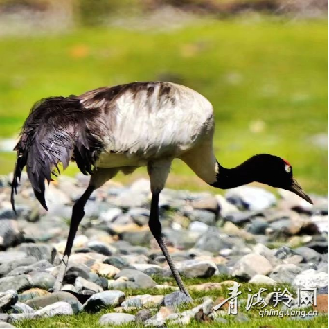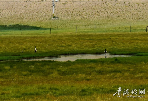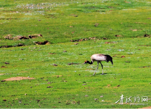 祁连央隆湿地:黑颈鹤悠闲散步